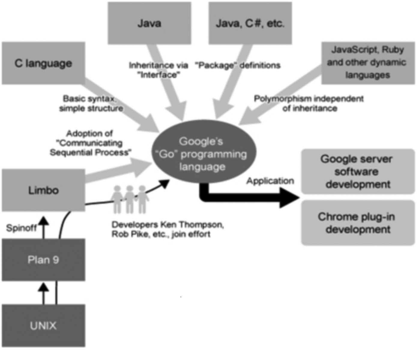 下图展示了一些其它编程语言对 Go 语言的影响:
