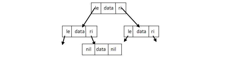 二叉树中每个节点最多能链接至两个节点:左节点(le)和右节点(ri),这两个节点本身又可以有左右节点,依次类推。树的顶层节点叫根节点(root),底层没有子节点的节点叫叶子节点(leaves),叶子节点的 leri 指针为 nil 值。在 Go 中可以如下定义二叉树: